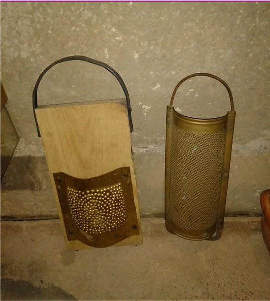 Three suspention devices can carry 3 kettles or pots. A crank is used to lower (increasing heat) or elevate (reduce heat) the cooking vessel.